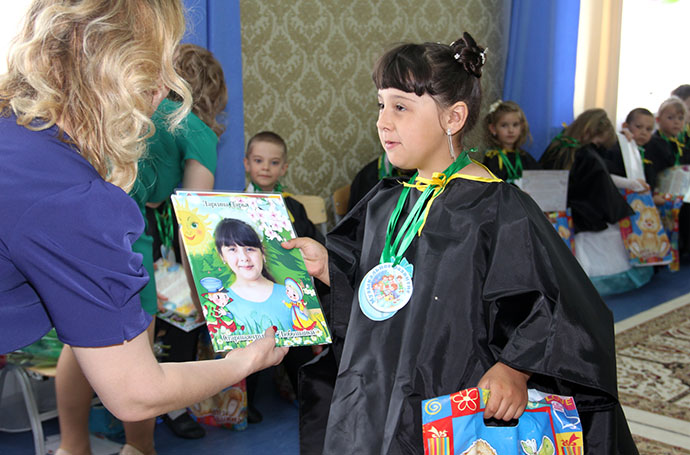 Для гостей выпускники приготовили целую концертную программу из песен, танцев, стихотворений и игр. Продемонстрировали ребята и знания, приобретённые за время пребывания в стенах детского сада: с увлечением вместе с педагогами и родителями они читали, считали, общались между собой на казахском и английском языках. В общем, оказавшись за партами через некоторое время, ребята точно не растеряются и возьмутся за учёбу как следует. Кстати пришлись и подарки от энергетиков — первые школьные принадлежности, которые ребятам лично вручил генеральный директор АО «СЕВКАЗЭНЕРГО» Леонид Ларичев.